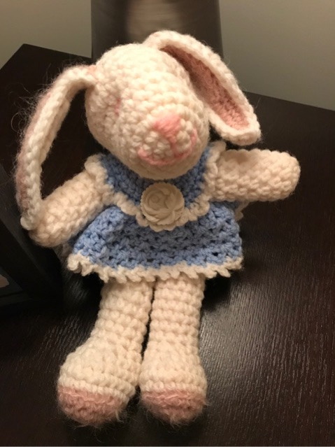 Hand knit bunny and a lamb made by a friend many years ago . .